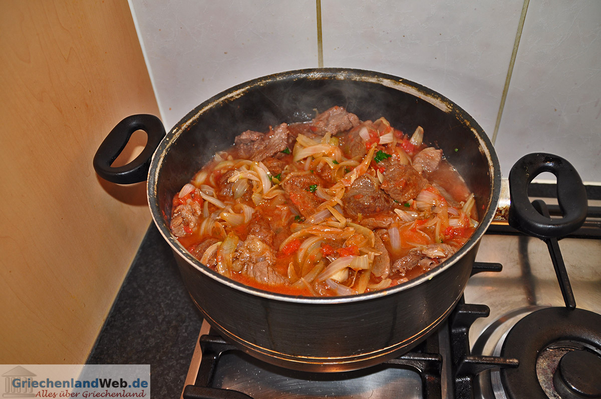 Remove with a slotted spoon and set aside. Widmen der am kommenden Samstag eine Kalamaki-Revival-Party mit Zitat. Zuletzt alles Fleisch wieder in die Pfanne geben. Stifado - Griechischer Schmoropf. Hierfür verwendet er feinstes Rinderfleisch.